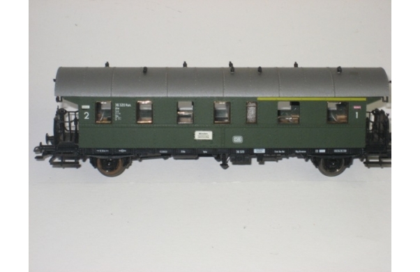 Sehr schöner und sehr gut erhaltener Wagen, z.Zt. Märklinachsen - können aber wieder getauscht werden, mit Kurzkupplung (auch auf Wunsch, z.Zt. Roco), mi einigen Figuren, Kurzkupplungsmechanik